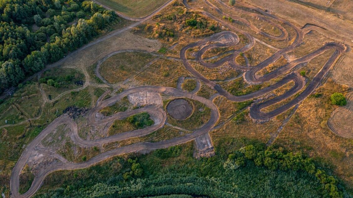 Tor motocrossowy wybudowany na starej kopalni. Wykorzystane naturalne ukształtowanie terenu.